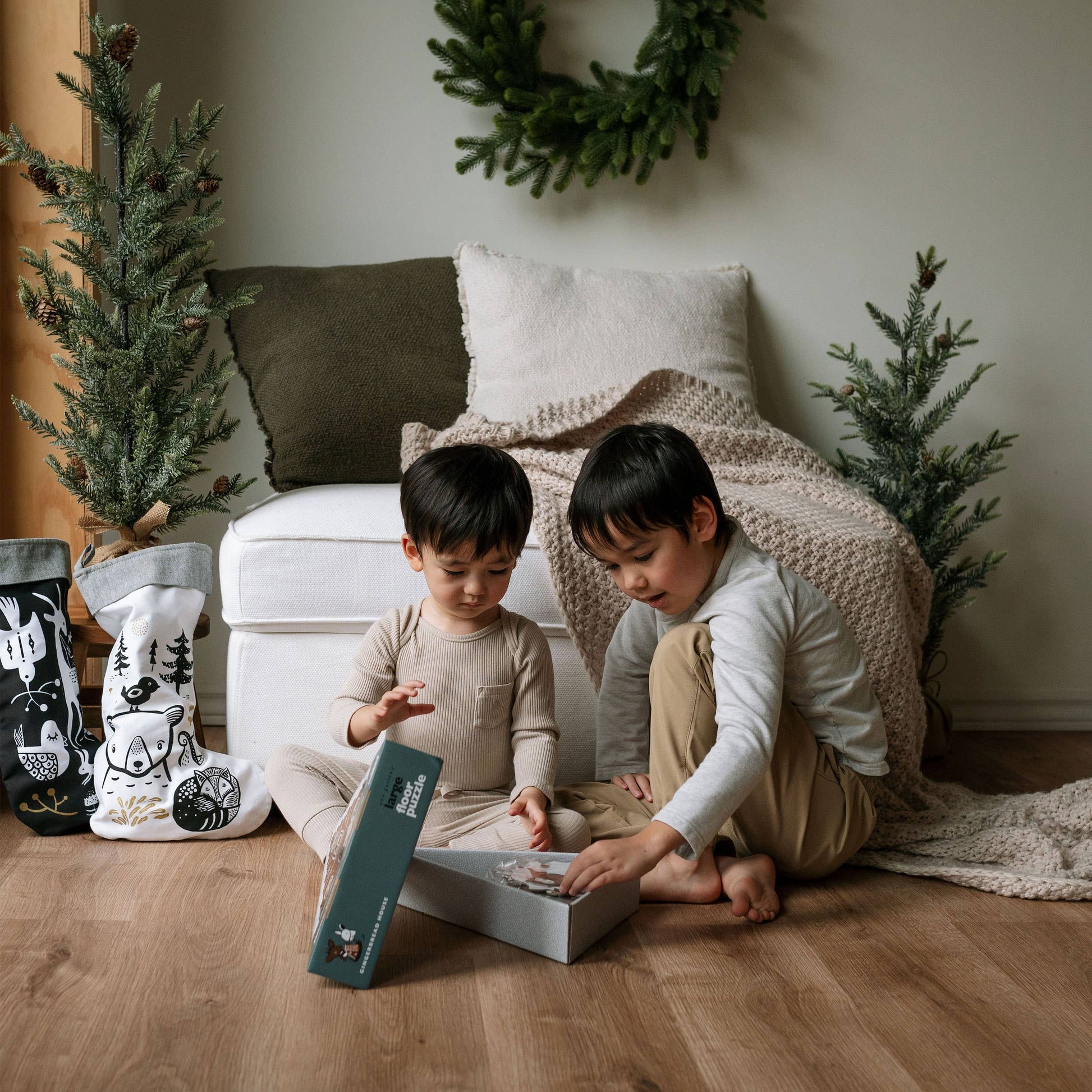 This 24 piece puzzle celebrates the beauty and magic of the Christmas & Holiday Season, while encouraging learning through play. The large pieces of our Gingerbread House puzzle are suited to developing cognitive problem-solving and motor skills in growing children. Featuring signature wildlife animal illustrations in our whimsical woodland style.