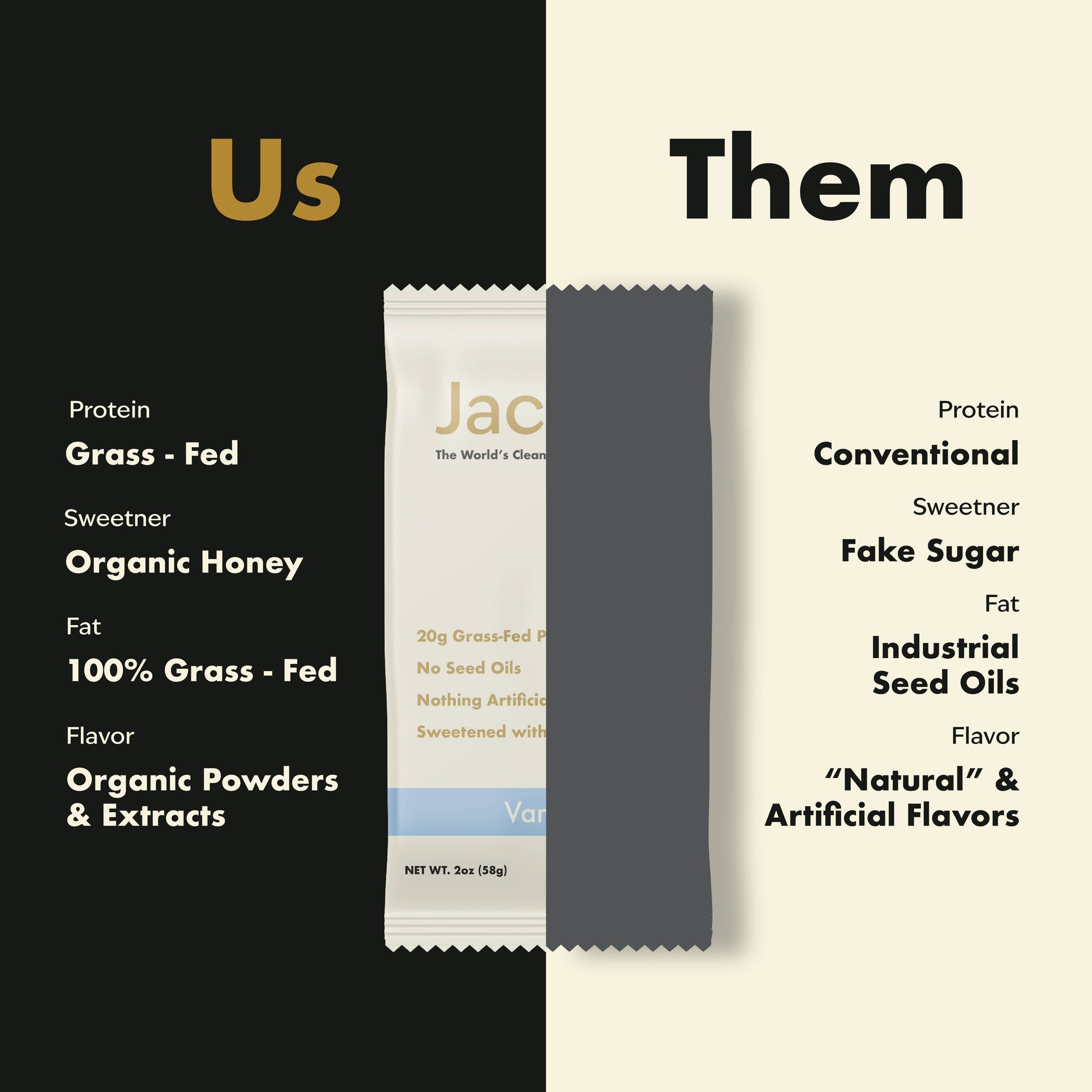Jacob Protein Bars deliver high-protein nutrition on the go without compromise. Made with grass-fed whey and milk protein isolates, bovine collagen, and grass-fed beef tallow for sustained energy and satisfaction. Sweetened naturally with organic honey and dates—no artificial sweeteners.